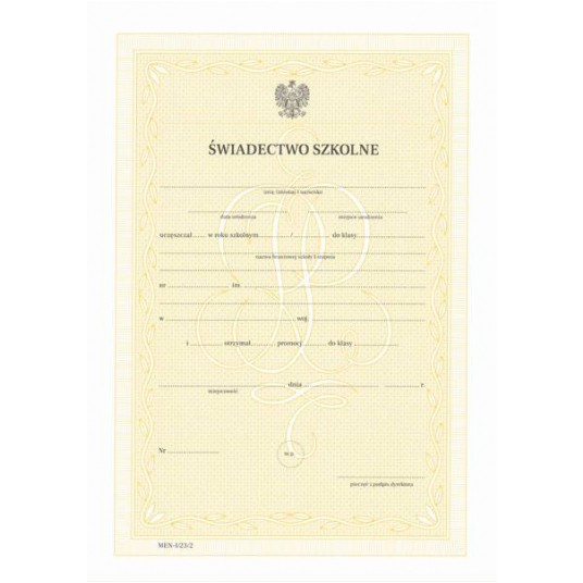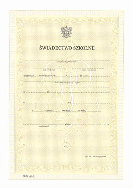 MEN-I/23/2 - Świadectwo dla uczniów branżowej szkoły I stopnia Typograf A4 (4 str.)