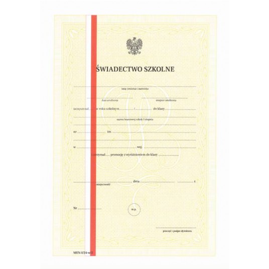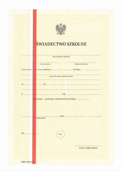 MEN-I/24-w/2 - Świadectwo dla uczniów branżowej szkoły I stopnia z wyróżnieniem Typograf A4 (4 str.)