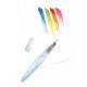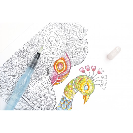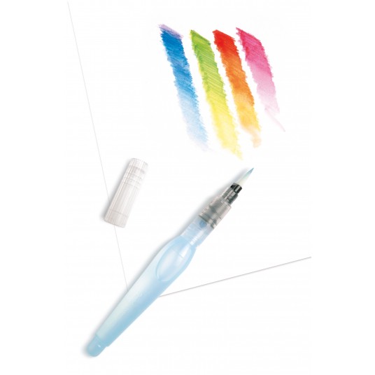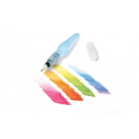 Pędzelek wodny FRH. Niezastąpiony w pracy z akwarelami i kredkami akwarelowymi. Do tworzenia ilustracji, pejzaży, melancholijnych obrazów. Prosty w obsłudze, łatwy w czyszczeniu (moczymy go w wodzie). Służy do rozmazywania kolorów. Higieniczny i wygodny w użytkowaniu. Zastępuje tradycyjny pędzelek i kubek na wodę. Przezroczysta obudowa pozwala kontrolować ilość płynu w zbiorniczku. Poprzez delikatne ściśnięcie obudowy doprowadzamy wodę do końcówki.