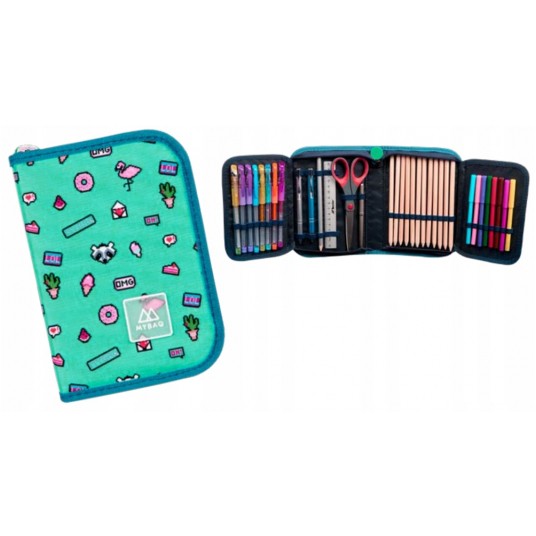 - zamykany na suwak, 2 rozkładane skrzydła - gumki na przybory szkolne, miejsce na plan lekcji - bez wyposażenia - wymiary: 14 x 20 cm