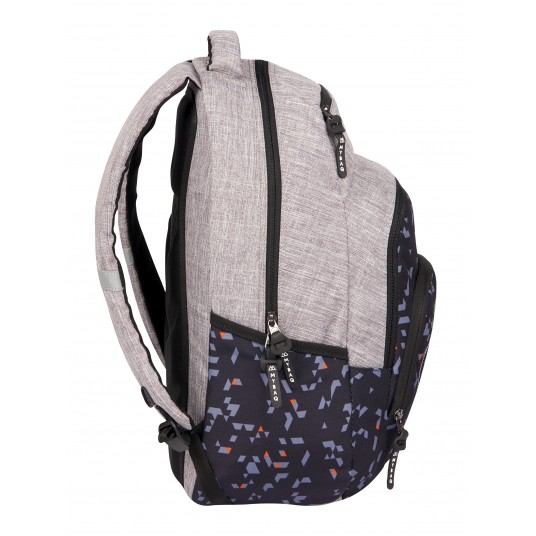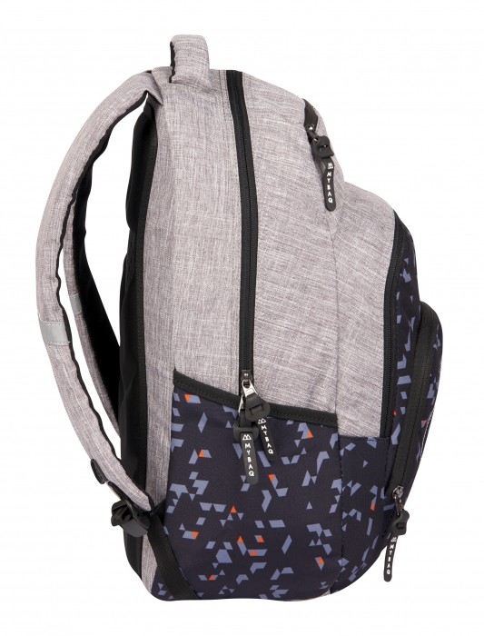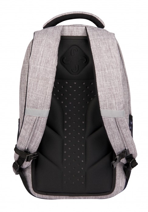 - wodoodporny poliester 600D - 1 komora i 3 kieszenie zamykane na suwak - wewnątrz kieszeń na laptop lub tablet, organizer - usztywnione plecy (pianka EVA), wyściełane szelki, odblaski - wymiary: 36 x 51 cm