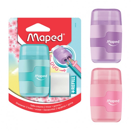 - temperówka z gumką - gumka biała, nie zawiera PVC - po zużyciu możliwość wymiany gumki na nową - Essentials Medium - temperówka z dwoma otworami - plastikowa klapka zamykająca otwór zapobiega wysypywaniu się trocin i pyłu grafitowego do piórnika i tornistra - dostępna w trzech kolorach pastelowych: turkusowym, różowym i fioletowym - na blistrze 1 sztuka plus zapasowa gumka