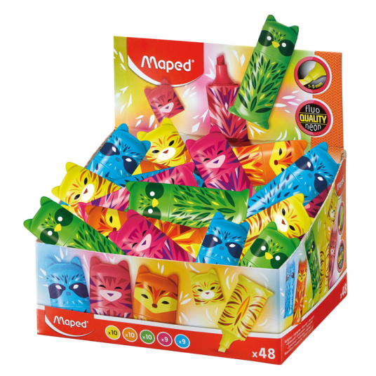 - zakreślacz w mini formacie, zaokraglony kształt obudowy z zatyczką w kształcie zwierzaka