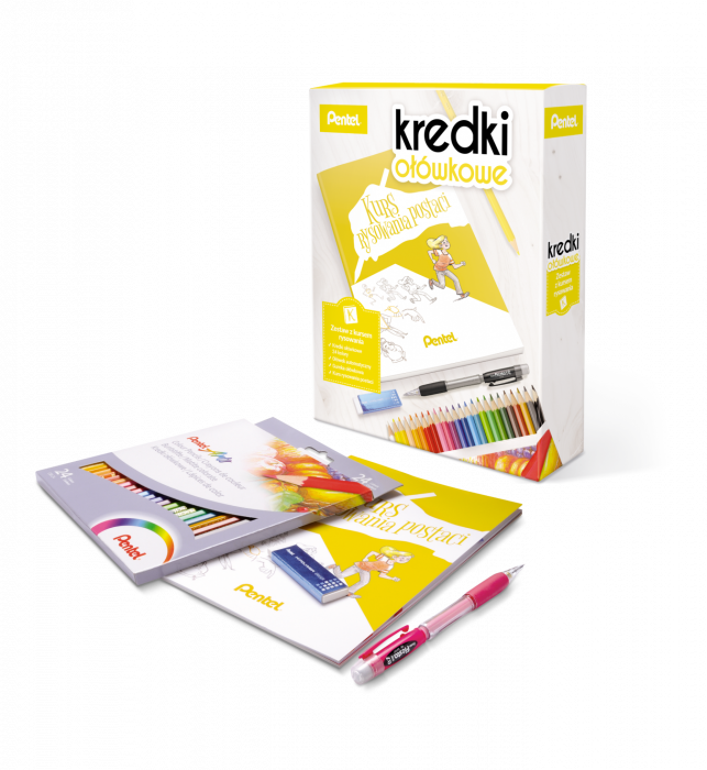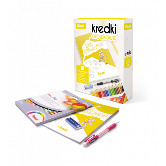 W zestawie bogato ilustrowany kurs rysowania postaci, kredki ołówkowe 24 kolory, ołówek i gumka. Kurs wyjaśnia i pokazuje, że rysowanie to sztuka, której można się nauczyć cierpliwie i dokładnie studiując kolejne kroki. Książeczka podzielona jest na 14 tematycznych rozdziałów: oczy, nos, uśmiech, twarz, głowa, uszy, włosy, emocje, ciało, ręce, nogi, tors i pośladki, ruch, ubranie. Z takim przygotowaniem i narzędziami – rysować każdy może!