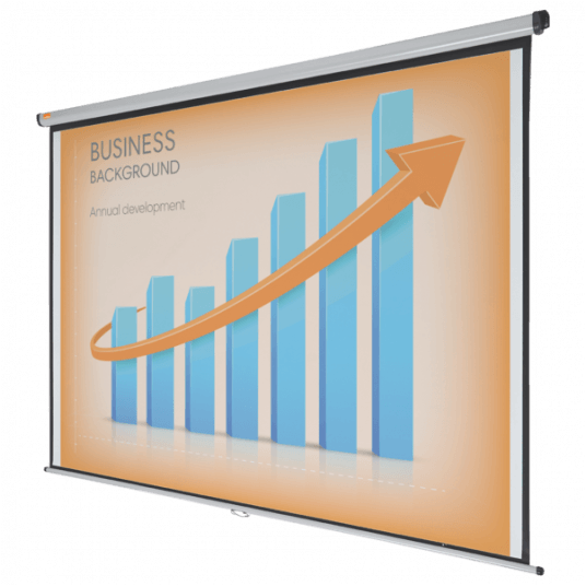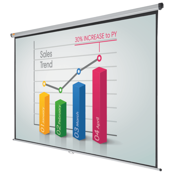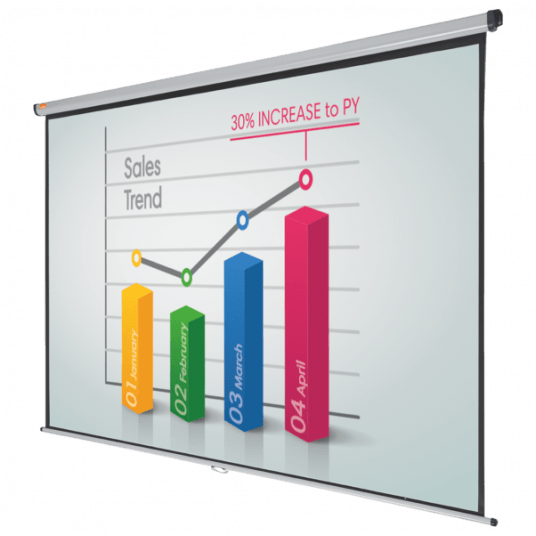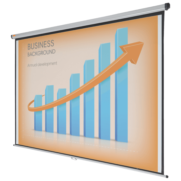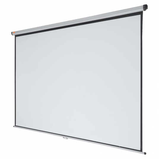 Doskonała biała matowa powierzchnia ekranów Nobo zapewnia wyraźny i szczegółowy obraz, który bez problemu będzie widoczny dla wszystkich widzów. Ekran można z łatwością schować do pokrowca, aby ochronić go przed uszkodzeniami lub na czas przechowywania. Dzięki dodatkowym opcjonalnym wysięgnikom ekran może być zamontowany nad tablicą suchościeralną lub skierowany w stronę widzów. Rozmiar 2400 mm x 1813 mm.