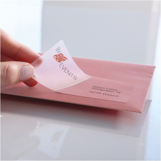 • Eleganckie etykiety z zaokrąglonymi narożnikami oraz specjalistycznym klejem trwale przylegającym do kartonów i innych powierzchni.