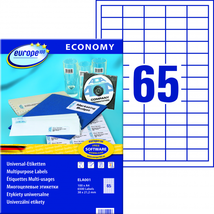 Etykiety uniwersalne Economy Europe100 by Avery Zweckform, A4, 100 ark./op., 38 x 21,2 mm, białe