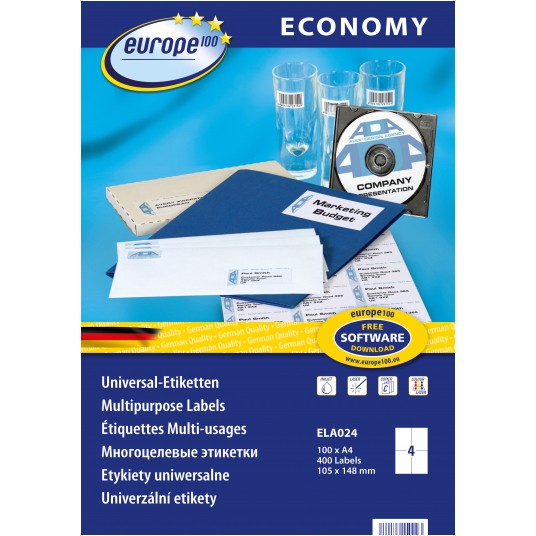 Etykiety uniwersalne Economy Europe100 by Avery Zweckform, A4, 100 ark./op., 105 x 148 mm, białe