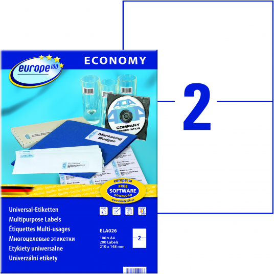 Etykiety uniwersalne Economy Europe100 by Avery Zweckform, A4, 100 ark./op., 210 x 148 mm, białe