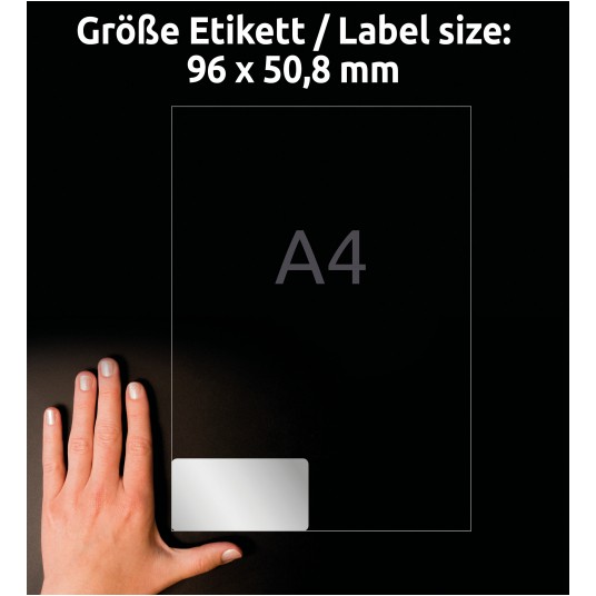 • Etykiety samoprzylepne wykonane ze srebrnego poliestru.