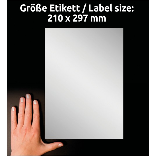Etykiety znamionowe srebrne Avery Zweckform, A4, 20 ark./op., 210 x 297 mm, poliestrowe
