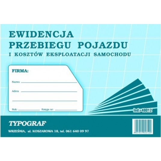 Ewidencja przebiegu pojazdu i kosztów eksploatacji samochodu Typograf A5