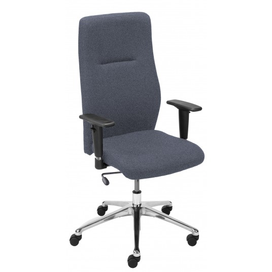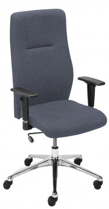 • Obrotowe krzesło z mechanizmem Tilt, wysokim obustronnie tapicerowanym oparciem i siedziskiem oraz regulowanymi podłokietnikami