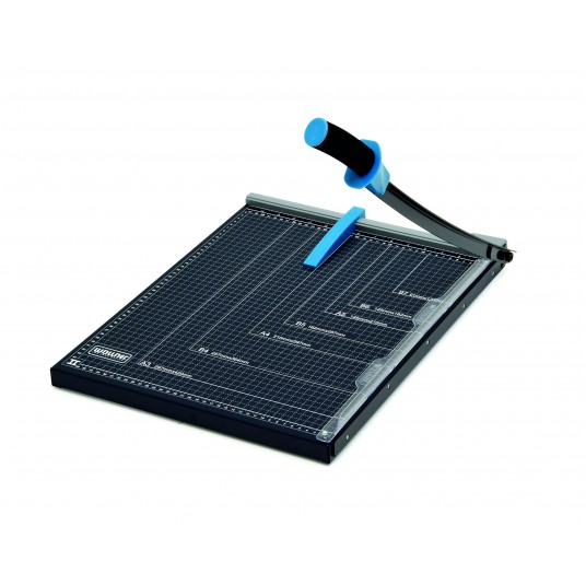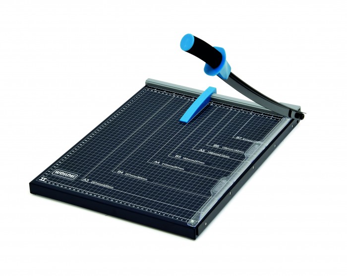 - gilotyna biurowa z ręcznym systemem docisku papieru - antypoślizgowa podstawa blatu roboczego - wysokiej jakości ostrze wykonane z utwardzonej stali - na blacie roboczym standardowe szablony formatów - jednorazowe cięcie 8-10 kartek 80g
